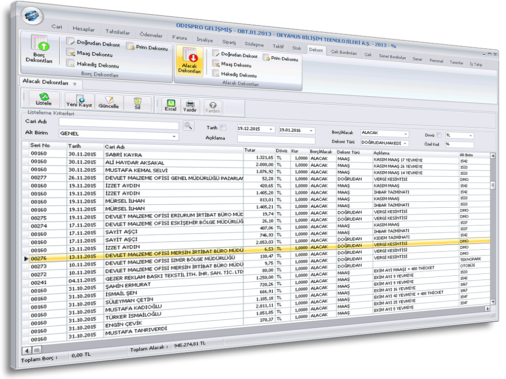 ODISPRO Bulut Ön Muhasebe ve İş Takip programı Dekont Modülü ile;